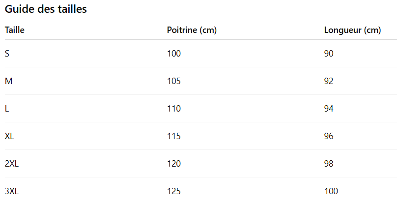 Größentabelle